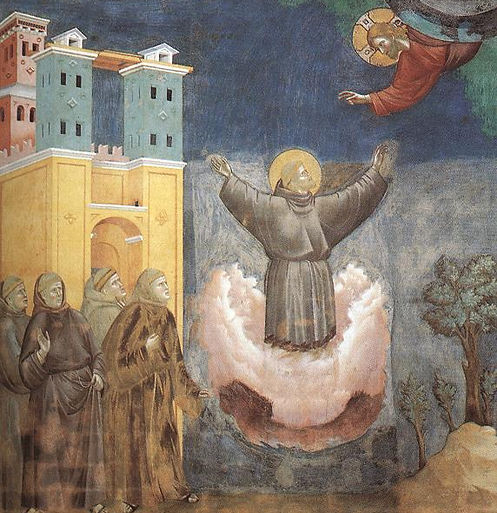 Mentre Francesco pregava con ardore, fu visto elevarsi da terra, avvolto da una luce splendida, e rimanere così sospeso per un certo tempo, rapito in Dio. (Legenda Maior IX, 1)