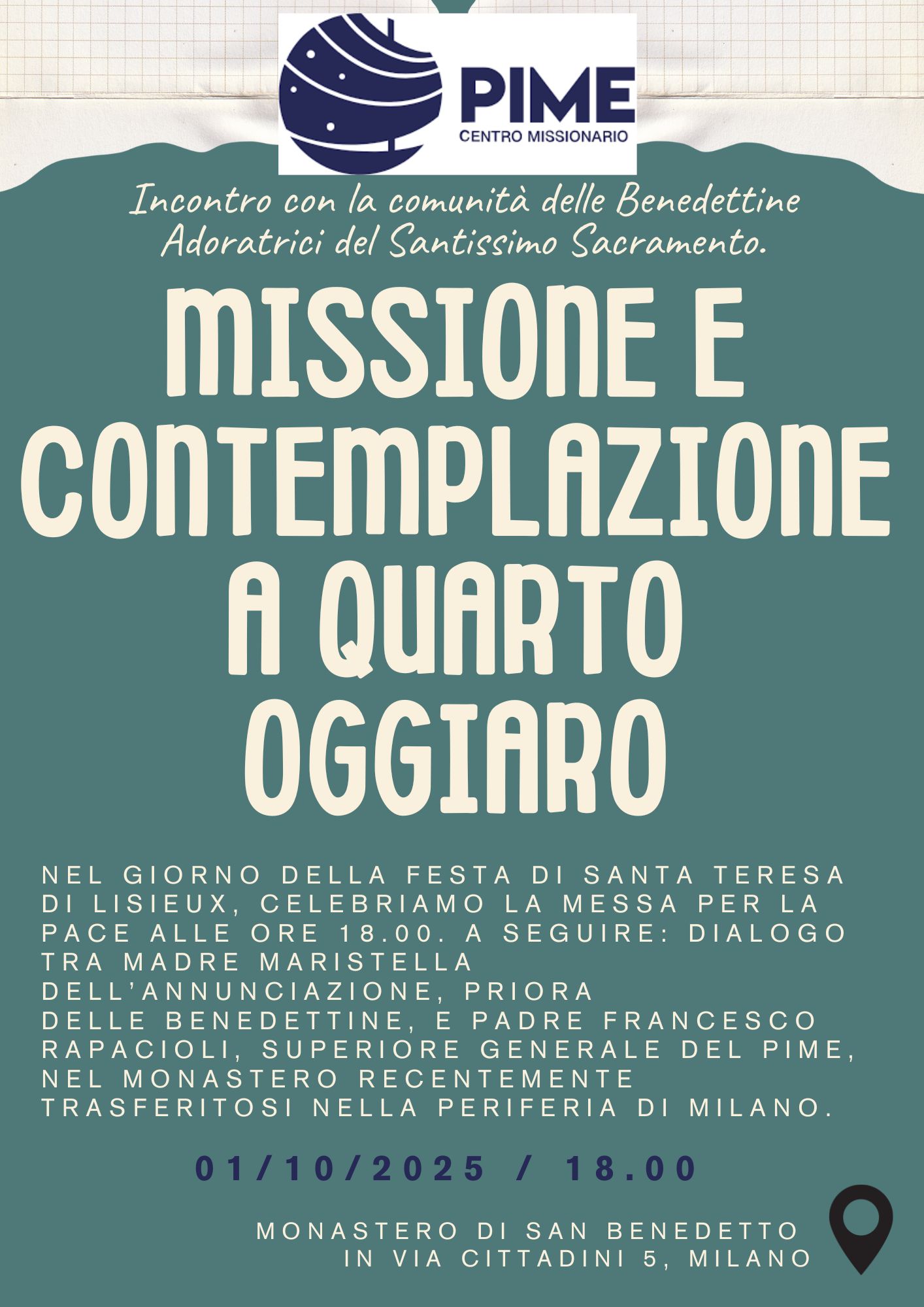 PROFESSIONE MONASTICA VENERDI' 31 OTTOBRE ore 16:00 | Presieduta dall'Arcivescovo Mario Delpini, nella chiesa di santa Agnese - accanto al monastero |